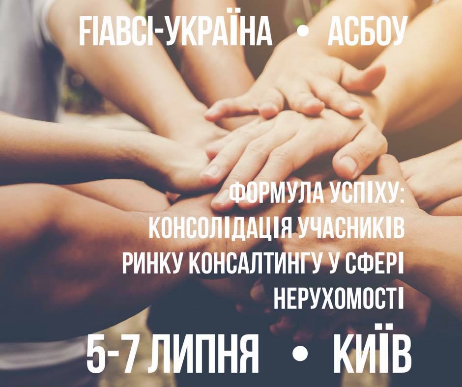 05 - 07 липня 2018 року, об'єднавши наші зусилля з Fiabci-Ukraine, Асоціація спеціалістів банківської оцінки України проводить у Києві міжнародну практичну конференцію "ФОРМУЛА УСПІХУ: КОНСОЛІДАЦІЯ учасників ринку консалтингу у сфері нерухомості", яка має об'єднати фахівців різних напрямів консалтингових послуг задля їх партнерства, співпраці та професійного зростання.